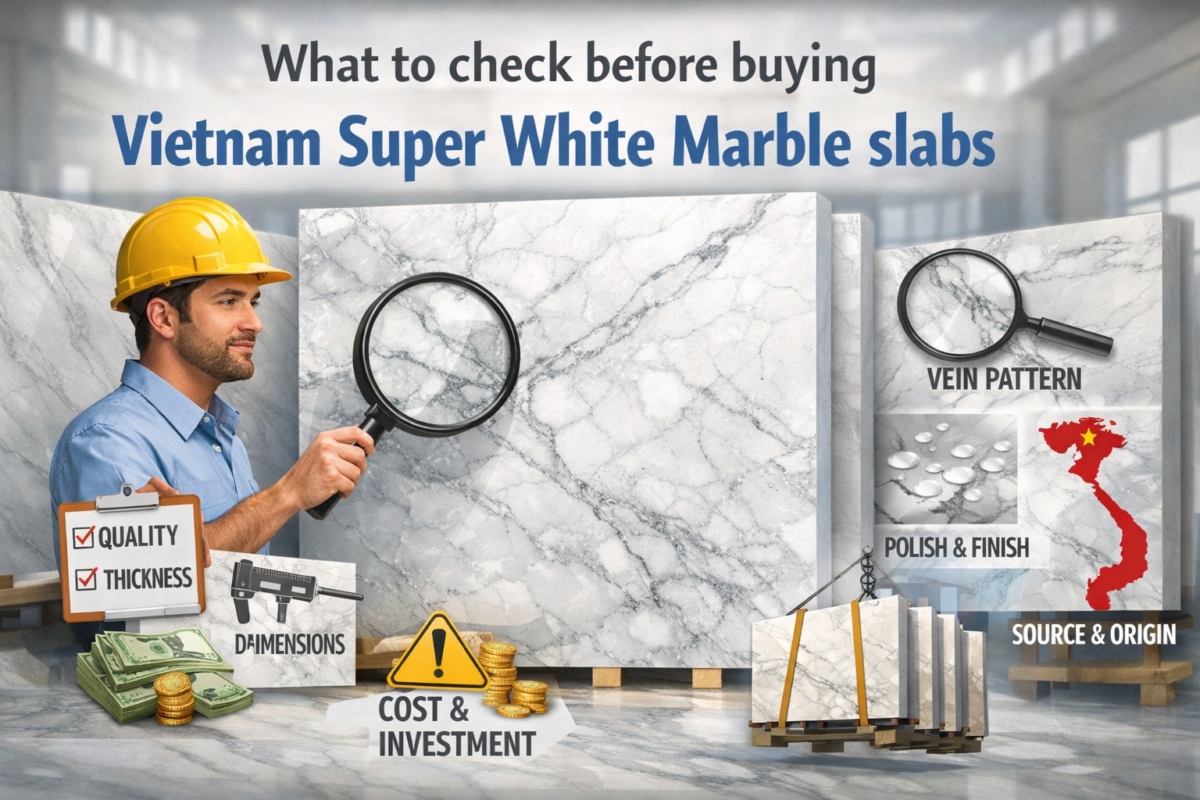 Buying Vietnam Super White Marble slabs requires careful evaluation to ensure the stone meets both aesthetic and structural requirements. Checking factors such as marble quality, slab thickness, surface finish, structural integrity, and supplier credibility helps prevent costly mistakes during installation.